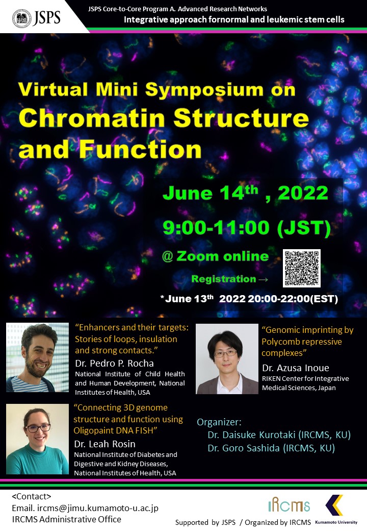 IRCMSウェブサイト:https://ircms.kumamoto-u.ac.jp/news/2022/05/jsps-core-to-core-program-virtual-mini-symposium-on-chromatin-structure.html